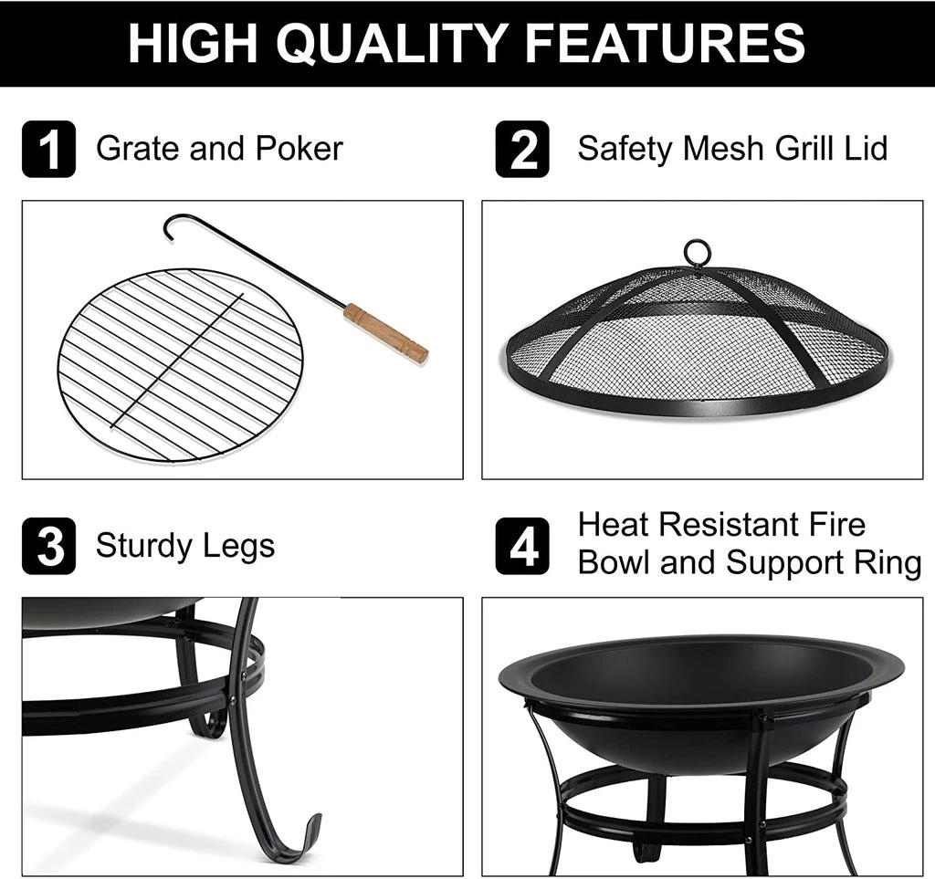 - FAST ASSEMBLY – The fire pit features a simple yet solid steel structure that allows for quick and easy assembly using the illustrated instructions included. The bowl is removable from the stand for easy cleaning.